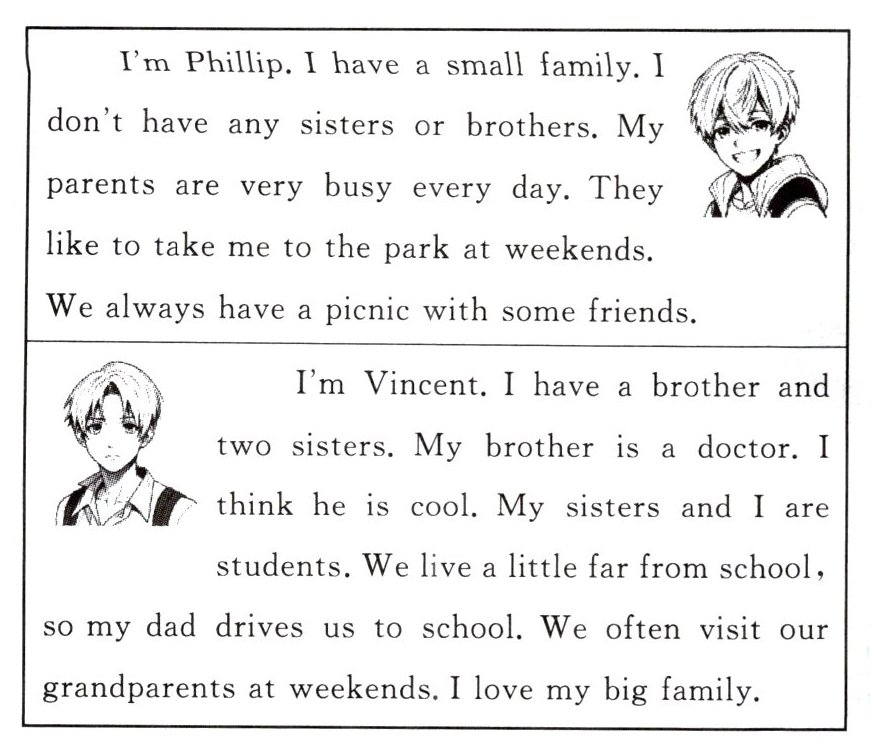 )19. Which of the following kids has the biggest(最大)family?A. Zhang Xinyue.