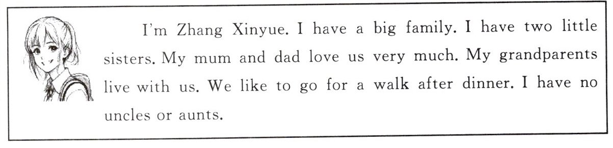 )17. What do Zhang Xinyue and her family like to do after dinner?A. Go to the park.