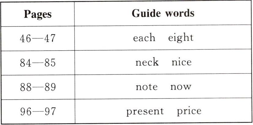活动1 On which page would you find these words? Write down the possible page number ranges(写出可能的页码范围) for the following words.