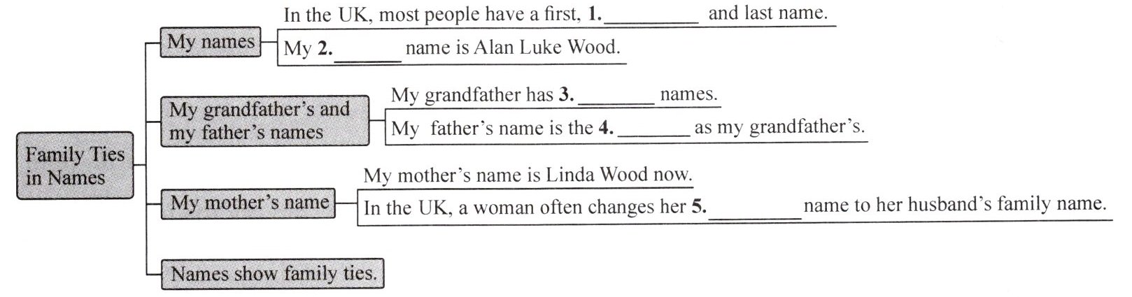 根据短文信息,完成下面的结构图。(每空一词)