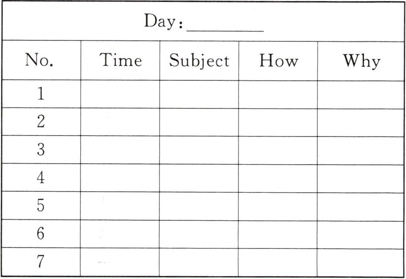 活动1 Work in groups. Talk about your class timetable for a certain day(某天). How do you like the subjects? And why? Please fill in the form.