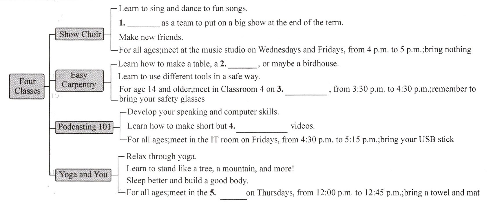 4. 【教材原句】Then join us for a yoga class. 那么来和我们一起上瑜伽课吧。
