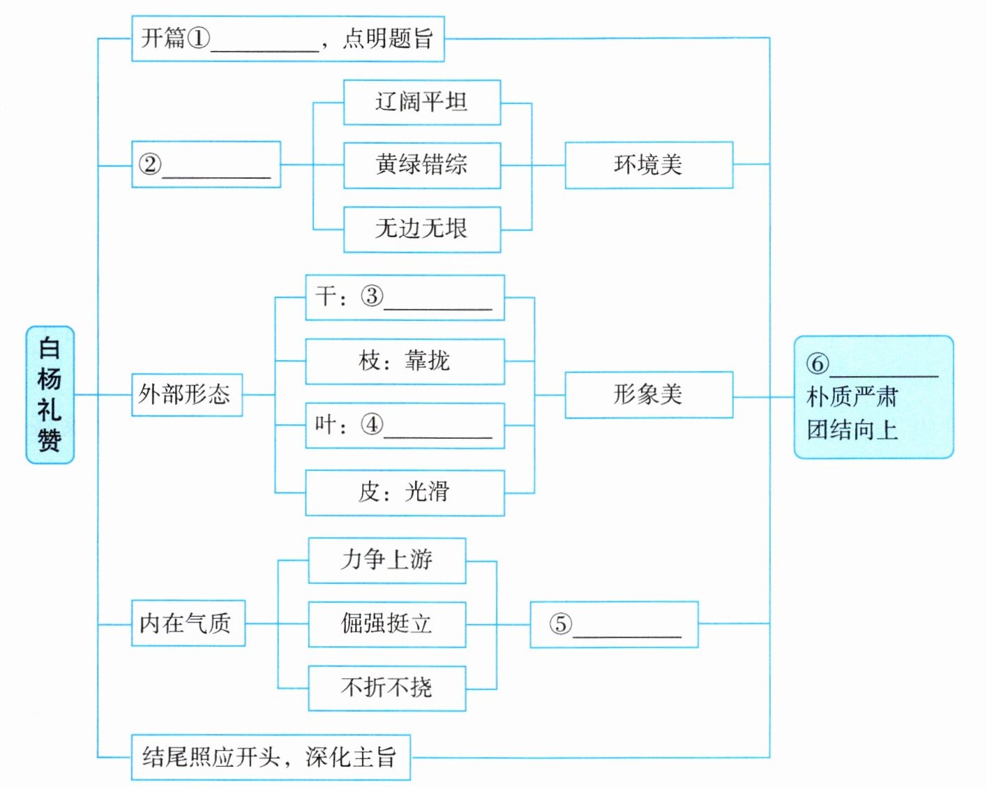 ①直抒胸臆 ②生长环境 ③笔直 ④向上 ⑤精神美 ⑥坚强不屈