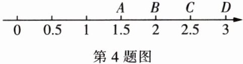 4. 数轴上的点 $ A $,$ B $,$ C $,$ D $ 如图所示,若一个正实数 $ a^{2}= 6 $,那么数轴上表示实数 $ a $ 的点所在位置在( )