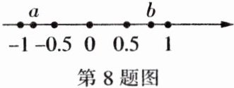 8. 实数$a$,$b$在数轴上的位置如图,化简:$\sqrt{a^{2}} - \sqrt{b^{2}} - \sqrt{(a - b)^{2}}$。