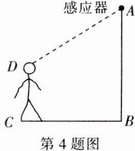 4. 如图,某自动感应门的正上方 $A$ 处装着一个感应器,离地 $AB = 2.1$ m,当人体进入感应器的感应范围内时,感应门就会自动打开。一名身高 $1.6$ m 的学生 $CD$ 正对门,缓慢走到离门 $1.2$ m 的地方时($BC = 1.2$ m),感应门自动打开,则该学生的头顶离感应器的距离 $AD$ 等于( )
