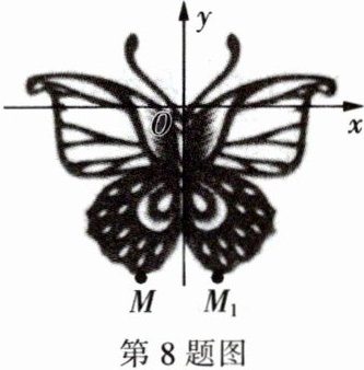 8. (2024·绵阳) 蝴蝶颜色绚丽,翩翩起舞时非常美丽,深受人们喜爱,它的图案具有对称美。如图,蝴蝶图案关于 $y$ 轴对称,点 $M$ 的对应点为 $M_1$,若点 $M$ 的坐标为 $(-2, -3)$,则点 $M_1$ 的坐标为( )