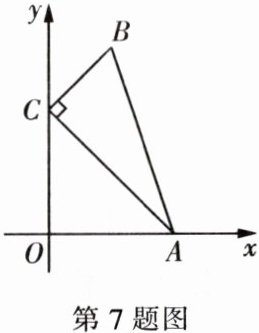 7. 如图,在平面直角坐标系中,$\triangle ABC$ 满足 $\angle ACB = 90°$,$AC = 4$,$BC = 2$,点 $A$,$C$ 分别在 $x$ 轴、$y$ 轴上,且 $OA = OC$,请分别求出 $A$,$B$,$C$ 三点的坐标。