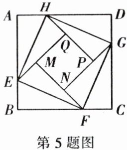 5. 如图是由“赵爽弦图”变化得到的,它由八个全等的直角三角形拼接而成,记图中正方形 $ABCD$、正方形 $EFGH$、正方形 $MNPQ$ 的面积分别为 $S_1$,$S_2$,$S_3$。若 $S_1 + S_2 + S_3 = 60$,则 $S_2$ 的值是( )