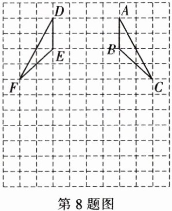 8. 如图,$\triangle ABC$ 和 $\triangle DEF$ 是关于 $y$ 轴对称的两个三角形,且点 $D$ 的纵坐标是 $5$。