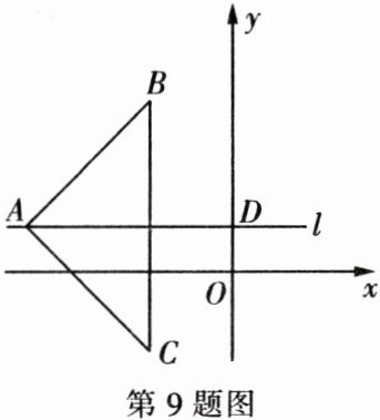 9. 如图,在平面直角坐标系中,直线 $l$ 过点 $A$ 且平行于 $x$ 轴,交 $y$ 轴于点 $D (0,1)$,已知 $AD= 5$,$\triangle ABC$ 关于直线 $l$ 对称。