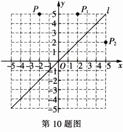 10. 在平面直角坐标系中,直线 $l$ 为第一、三象限角平分线,点 $P$ 关于 $y$ 轴的对称点称为 $P$ 的一次反射点,记作 $P_1$;点 $P_1$ 关于直线 $l$ 的对称点称为点 $P$ 的二次反射点,记作 $P_2$。
