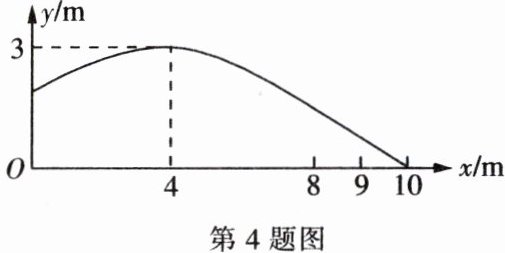 4. 如图是小周同学推出的铅球行进的曲线,其中 $ y $ 表示铅球行进的高度, $ x $ 表示铅球与小周之间的水平距离。