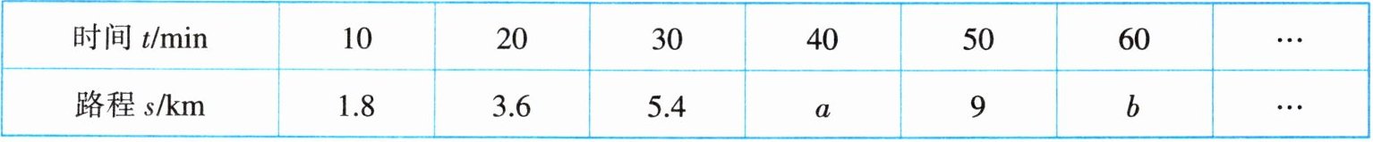 | 路程 $ s/km $ | $1.8$ | $3.6$ | $5.4$ | $a$ | $9$ | $b$ | …$$ |
