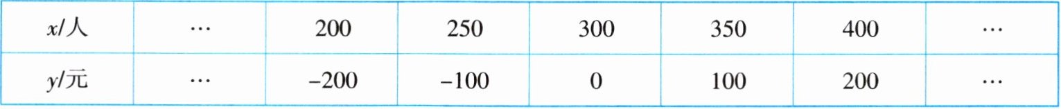 | $ x $/人 | …$ $ | $ 200 $ | $ 250 $ | $ 300 $ | $ 350 $ | $ 400 $ | …$ $ |