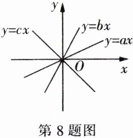 8. 如图,三个正比例函数的图象分别对应的表达式是:①$ y = ax $,②$ y = bx $,③$ y = cx $,下列表示 $ a $,$ b $,$ c $ 的不等关系正确的是( )