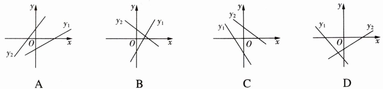 6. 一次函数 $ y_1 = kx + b $ 和 $ y_2 = bx - k $ 在同一坐标系内的图象大致是 ( )