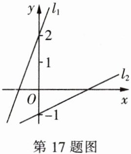 17. (2024·通辽) 如图,在同一平面直角坐标系中,一次函数 $ y = k_1x + b_1 $ 与 $ y = k_2x + b_2 $ (其中 $ k_1k_2 \neq 0 $, $ k_1 $, $ k_2 $, $ b_1 $, $ b_2 $ 为常数) 的图象分别为直线 $ l_1 $, $ l_2 $。下列结论正确的是 ( )