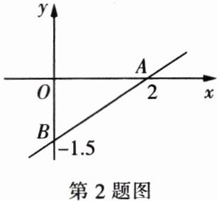 2. 一次函数y= kx+b的图象与x轴、y轴的交点A,B如图所示,则过原点且与直线AB平行的直线对应的函数表达式为____。