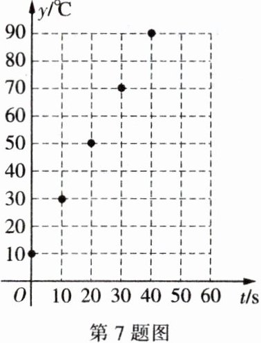 7. 某食用油的沸点远高于水的沸点。小聪想用刻度不超过100℃的温度计测算出这种食用油的沸点,在老师的指导下,他在锅中倒入一些这种食用油均匀加热,并每隔10s测量一次锅中油温,得到的数据记录如下:
