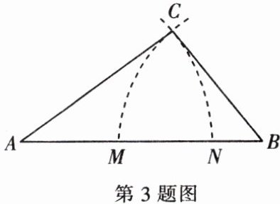 3. 已知 $M$,$N$ 是线段 $AB$ 上的两点,$AM = MN = 2$,$NB = 1$,以点 $A$为圆心、$AN$ 长为半径画弧;再以点 $B$ 为圆心、$BM$ 长为半径画弧,两弧交于点 $C$。连接 $AC$,$BC$,则$\triangle ABC$ 一定是( )