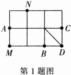 1. 如图,在由小正方形组成的 $3×2$ 网格中,每个小正方形的顶点称为格点。点 $A$,$B$,$C$,$D$,$M$,$N$ 均在格点上,其中 $A$,$B$,$C$,$D$ 四个点中能与点 $M$,$N$ 构成一个直角三角形的是点____。