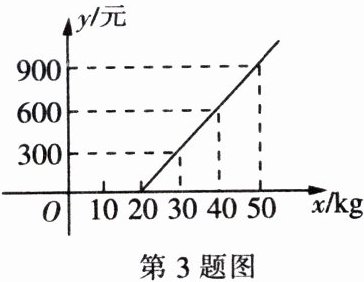 3. 如图所示表示的是某航空公司托运行李的费用y(元)与托运行李的质量x(kg)之间的关系,由图象可知行李的质量只要不超过______kg,就可以免费托运。
