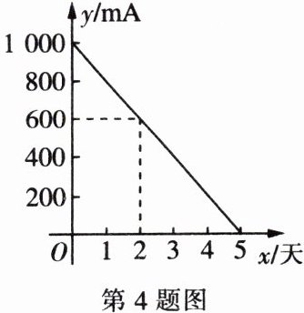 4. 某手机的剩余电量y(mA)是使用天数x的一次函数,y和x的函数关系如图所示。