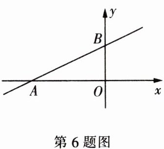 6. (2024·扬州) 如图,已知一次函数 $ y = kx + b $($ k\neq 0 $)的图象分别与x轴、y轴交于A,B两点,若 $ OA = 2 $, $ OB = 1 $,则关于x的方程 $ kx + b = 0 $ 的解为______。