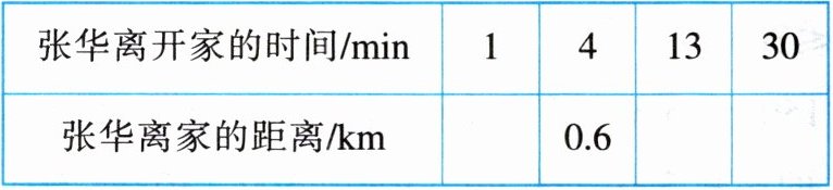 | 张华离开家的时间/min | 1 | 4 | 13 | 30 |