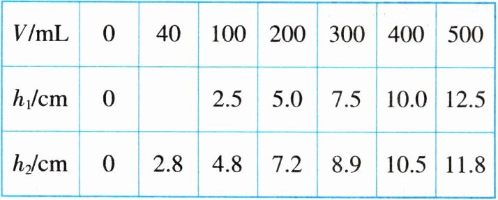 | $h_2/cm$ | $0$ | $2.8$ | $4.8$ | $7.2$ | $8.9$ | $10.5$ | $11.8$ |