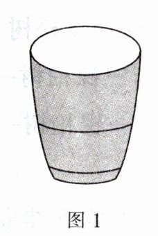 6. (2024·北京) 小云有一个圆柱形水杯(记为 1 号杯)。在科技活动中,小云用所学数学知识和人工智能软件设计了一个新水杯,并将其制作出来。新水杯(记为 2 号杯)的示意图如图所示。当 1 号杯和 2 号杯中都有 $V$ $mL$ 水时,小云分别记录了 1 号杯的水面高度 $h_1$($cm$)和 2 号杯的水面高度 $h_2$($cm$),部分数据如下: