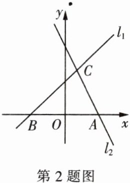 2. 如图,直线 $ l_1 $:$ y = x + 3 $ 与过点 $ A(3, 0) $ 的直线 $ l_2 $ 交于点 $ C(1, m) $,与 $ x $ 轴交于点 $ B $。