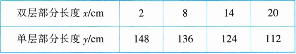 | 双层部分长度 $ x/cm $ | 2 | 8 | 14 | 20 |