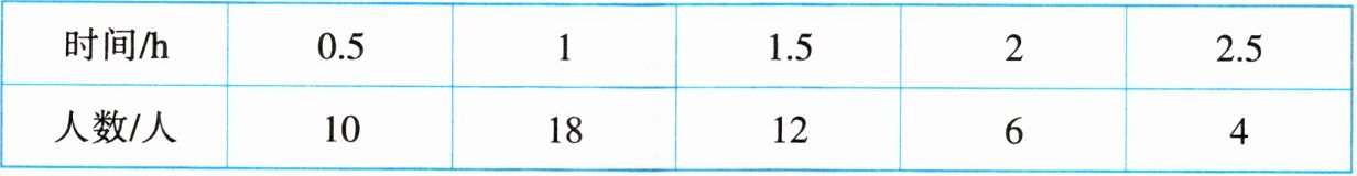 2. 每年的4月23日是“世界读书日”,某学校为了解学生的阅读时间,随机调查了八年级50名学生每天的平均阅读时间,统计结果如下表所示。在本次调查中,学生每天的平均阅读时间的众数是______h。