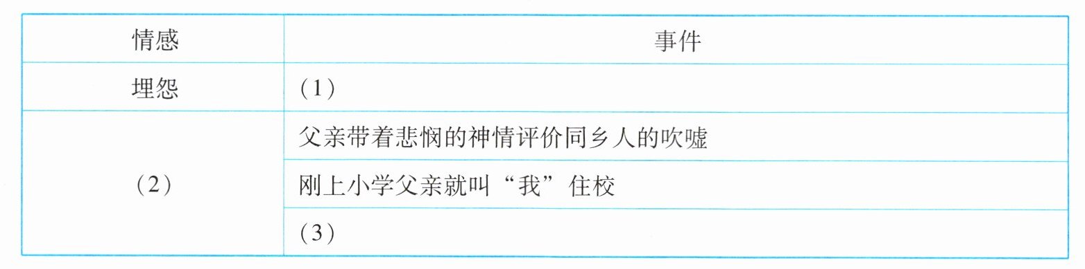10.(1)父亲送“我”上小学时让“我”从二年级念起 (2)感谢 (3)父亲送“我”回学校时,只送一半路程