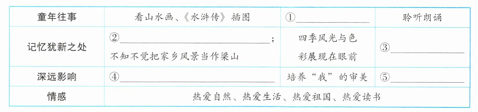 3. ①读《千家诗》 ②仿佛进入画中 ③老师动情的朗诵 ④懂得形象思维的作用 ⑤爱上了文学