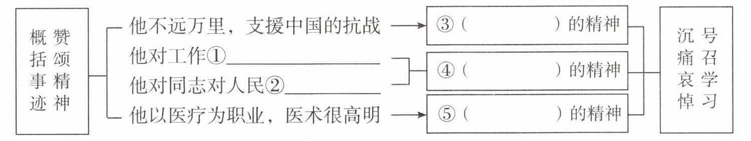 6. 对工作极端的负责任;对同志对人民极端的热忱;对技术精益求精。7. 从侧面烘托出白求恩工作的认真负责和精神的感人至深,突出了白求恩毫不利己专门利人精神的影响力;增强文章的真实性和感染力,让读者更深刻地感受到白求恩精神的伟大。8. “极端”本义为事物顺着某个发展方向达到的顶点,在这里强调程度达到了极致。两个“极端”连用,在反复中突出强调了白求恩毫不利己专门利人的精神,也饱含着作者对白求恩精神的高度赞美与敬佩之情。9. 【示例】在学习上,我们要以对学习极端负责的态度,认真对待每一门课程和每一次作业,不敷衍、不马虎;要有对知识精益求精的精神,不断钻研,追求进步。在生活中,要像白求恩一样热忱待人,不自私自利,努力做一个对社会有用的人。