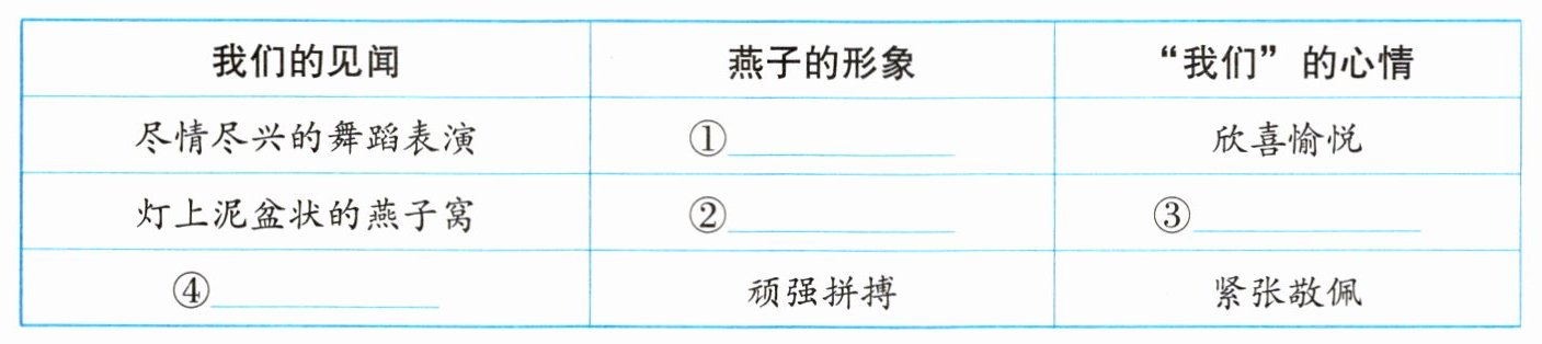 11. 动作、心理描写。通过“迈上”“快乐”“兴奋”等词,生动形象地写出了大家上楼梯时动作的小心翼翼和对燕子窝的好奇心理,表达了大家对燕子的喜爱之情。