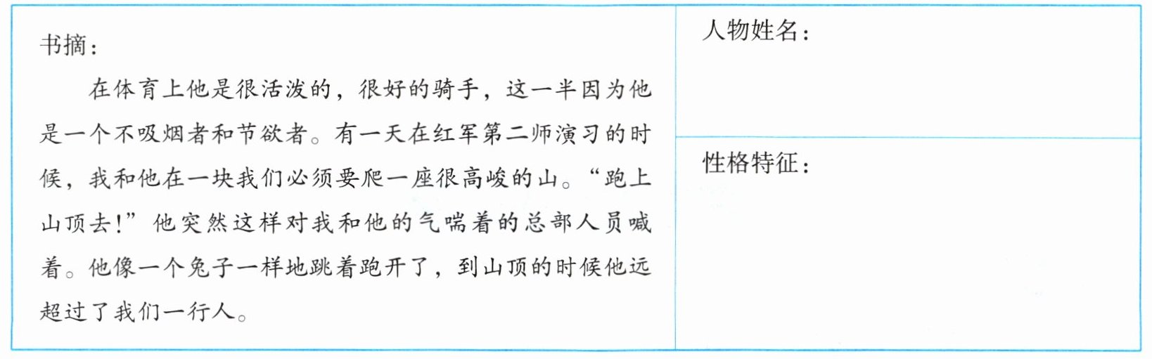 15. 学校开展“阅读红色经典,向英雄学习”活动,下面是某位同学制作的读书卡片,请将其完善。