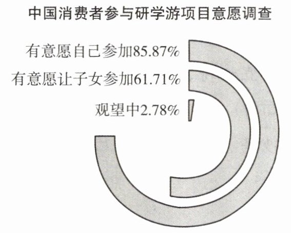 材料一:研学旅行,又名研学游,是一种寓教于游的教学新业态,是一种走出校门开展研究性学习和旅行体验相结合的校外实践活动,重在开阔学生视野,并培养学生的生活技能、集体观念以及实践能力等。以下数据为中国消费者参加研学游项目意向调查。