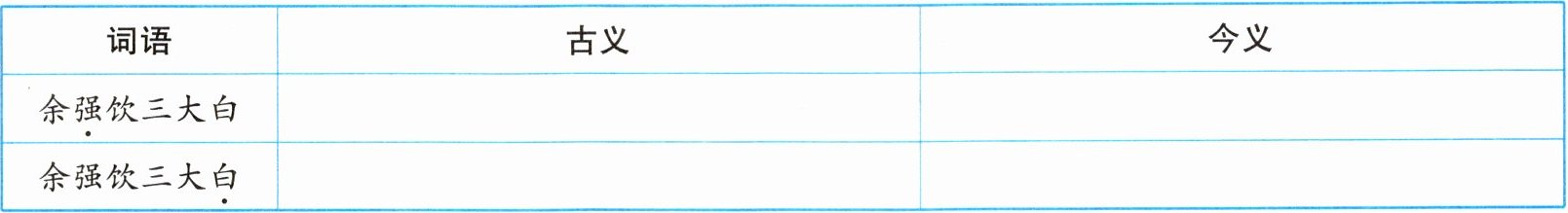 强:古义:竭力,尽力 今义:勉强 白:古义:古人罚酒时用的酒杯 今义:像霜或雪的颜色,与“黑”相对