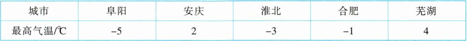 10. 下表记录了今年一月某日部分城市的最高气温: