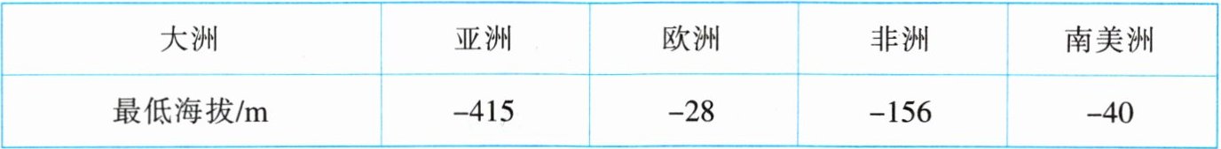 12. (2024·辽宁)亚洲、欧洲、非洲和南美洲的最低海拔如下表: