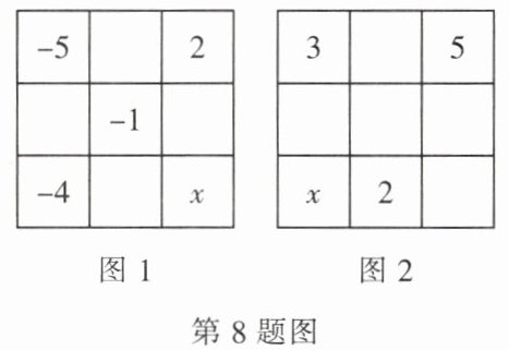 8. 我国的《洛书》中记载着世界上最古老的幻方——九宫格:将 9 个数字填入 $3×3$ 的方框内,使三行、三列、两对角线上的三个数字之和都相等.