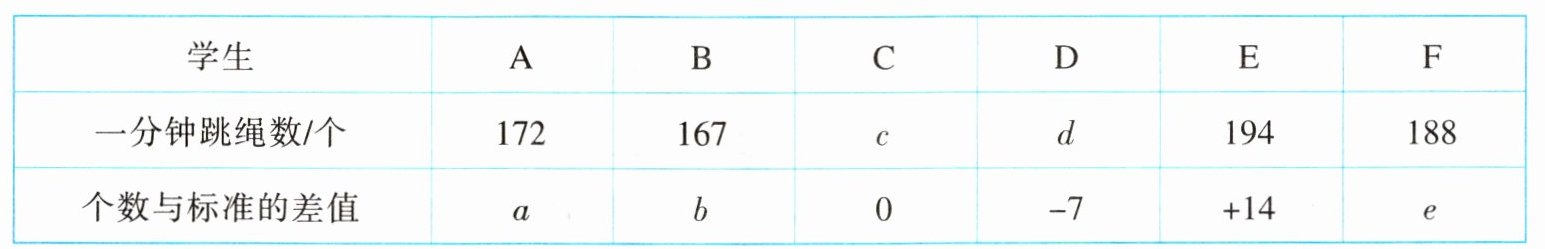 下表给出了七年级某班六名男生一分钟跳绳的个数及其与标准的差值: