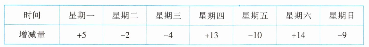 $200+\left[\frac{1}{7}×(5-2-4+13-10+14-9)\right]=201($辆).