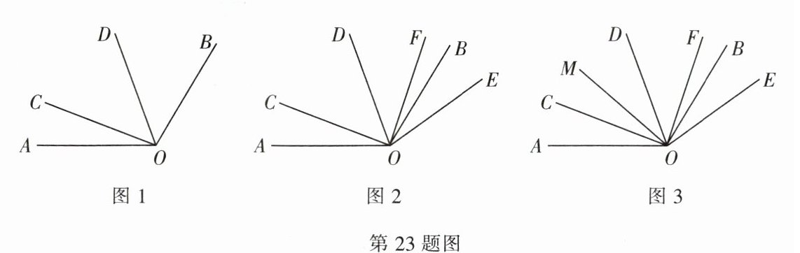 (3)如图 3,在(2)的条件下,在∠COD 内部作射线 OM,当∠BOM= 4∠COM,∠BOE= $\frac{11}{10}$∠AOC 时,求∠MOF 的度数.