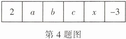 4. 如图,这六个方格中每个方格都表示一个数,且每相邻的三个数的积为 6,则$x$表示的数是(