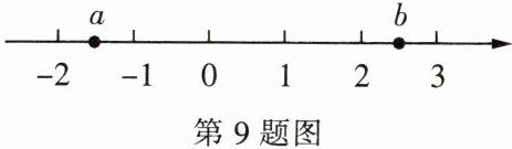 9. (2024·巴中) 实数$ a $,$ b $在数轴上对应点的位置如图所示,下列结论正确的是(